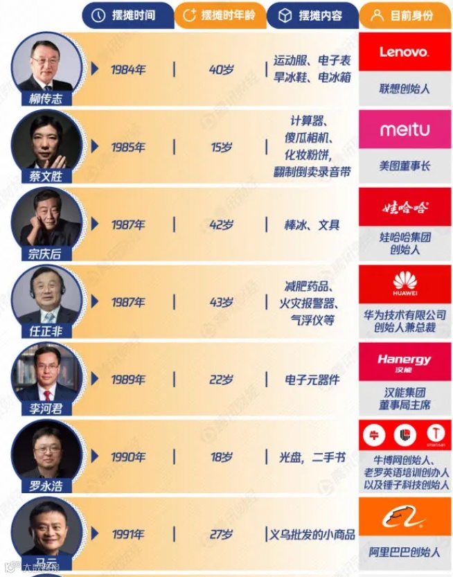 像这样的例子,还有很多很多。。。你们今天看到的很多中国商业圈的顶级企业家,起步的第一个阶段,其实都是从摆地摊开始的。。。