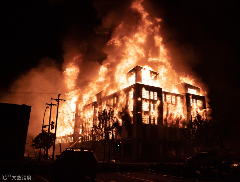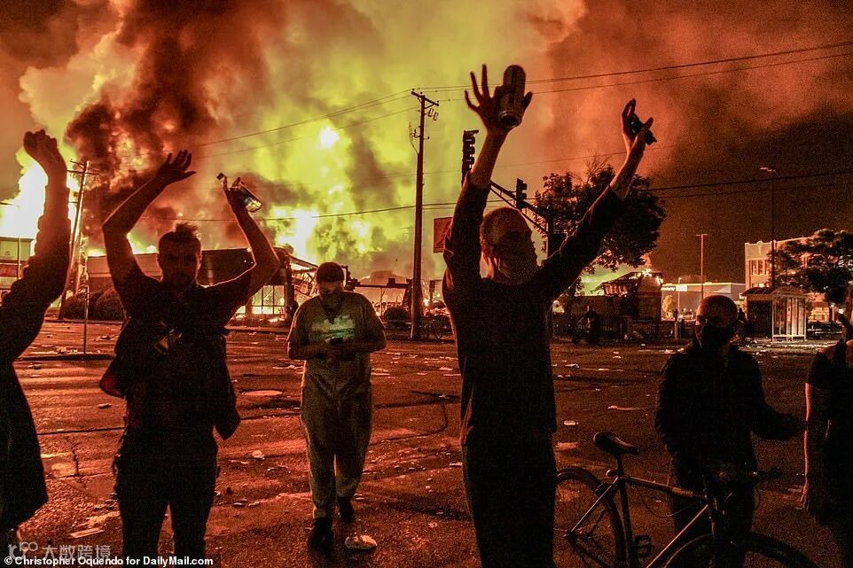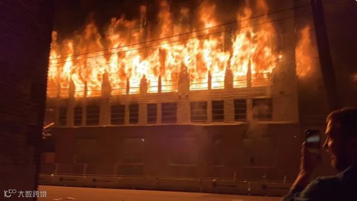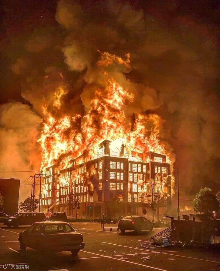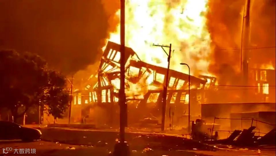 成千上万名群众涌上街头,焚毁美国国旗,在全城范围内打砸抢烧,洗劫商场超市,攻破银行珠宝店,暴砸ATM机保险箱,见车烧车,见房烧房!一栋全新建成的公寓大楼,被暴徒点燃后,在众目睽睽之下烧成灰烬,轰然倒塌!