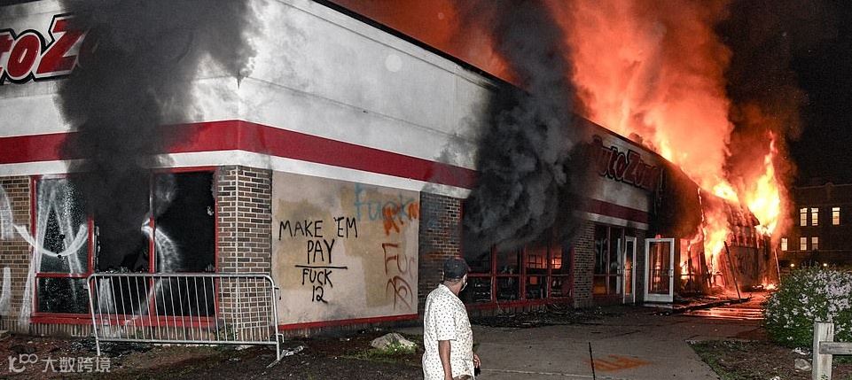 当地的Wendy's快餐店,Wlamart超市,Target商场,AutoZone汽车部件零售店,也全部被示威者纵火点燃。