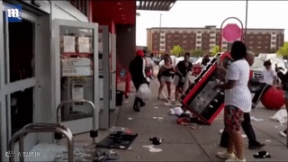 遭到打砸的商场内一片狼藉,人们抱着电视机等全新大宗商品心满意足地离开,现场如同黑色星期五的抢购。不同的是,他们没有付一分钱。