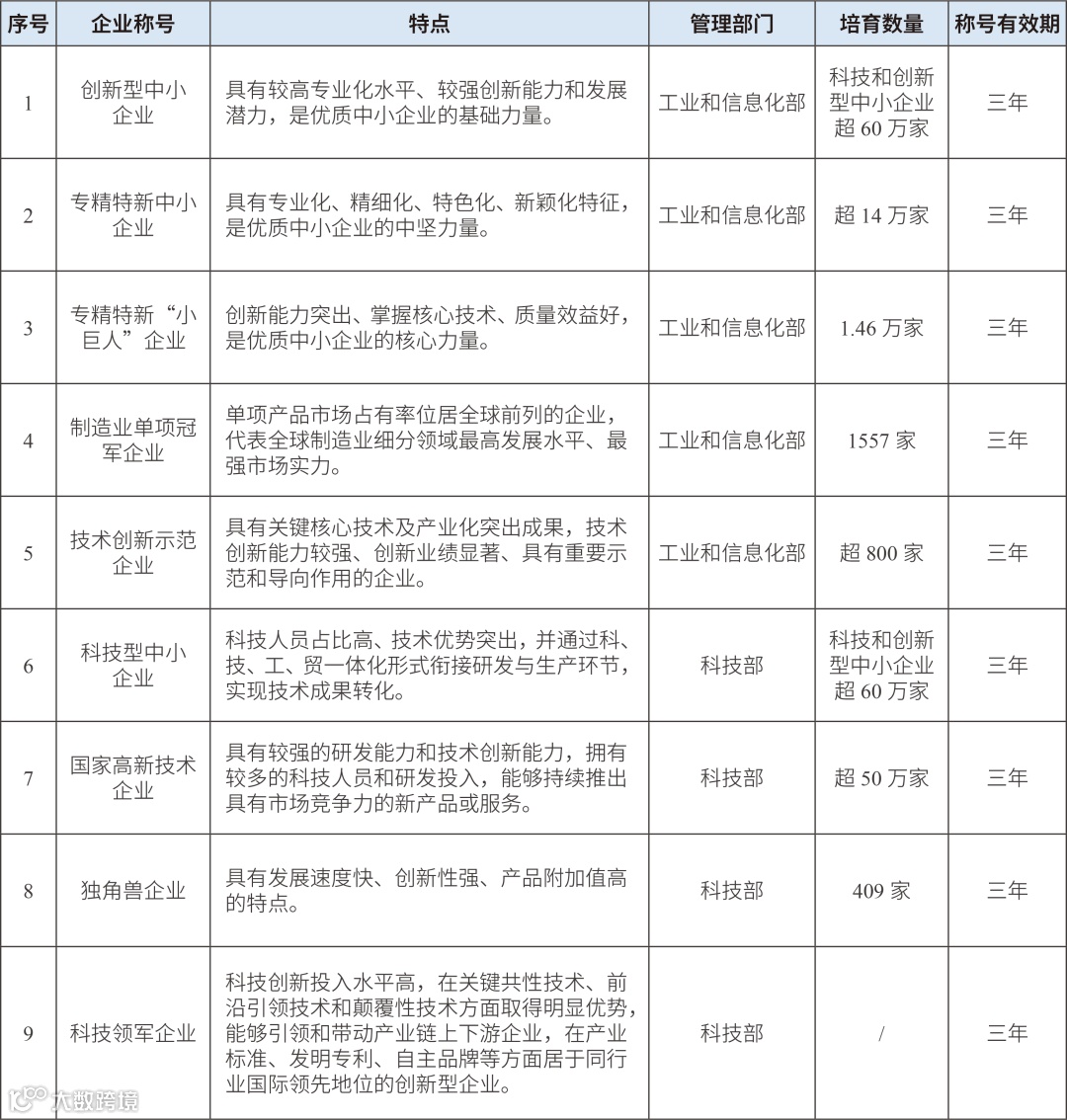近年来,我国坚持服务和管理并重、发展和帮扶并举,坚持培优企业与培强产业相结合,持续推动中小企业高质量发展,工业和信息化部、科技部均形成推动中小企业进级跃升的培育路径。其中,工业和信息化部形成中小企业梯度培育体系,即“创新型中小企业-专精特新中小企业-专精特新‘小巨人’企业-制造业单项冠军企业”的培育路径;科技部对中小企业的培育路径可以归总为“科技型中小企业-国家高新技术企业-独角兽企业”。两条企业培育路径相互关联、密切连接,目前,科技型中小企业已纳入工业和信息化部管理体系中,国家高新技术企业和创新型中小企业的转化路径也已打通,中小企业发展路径有更多样的选择。