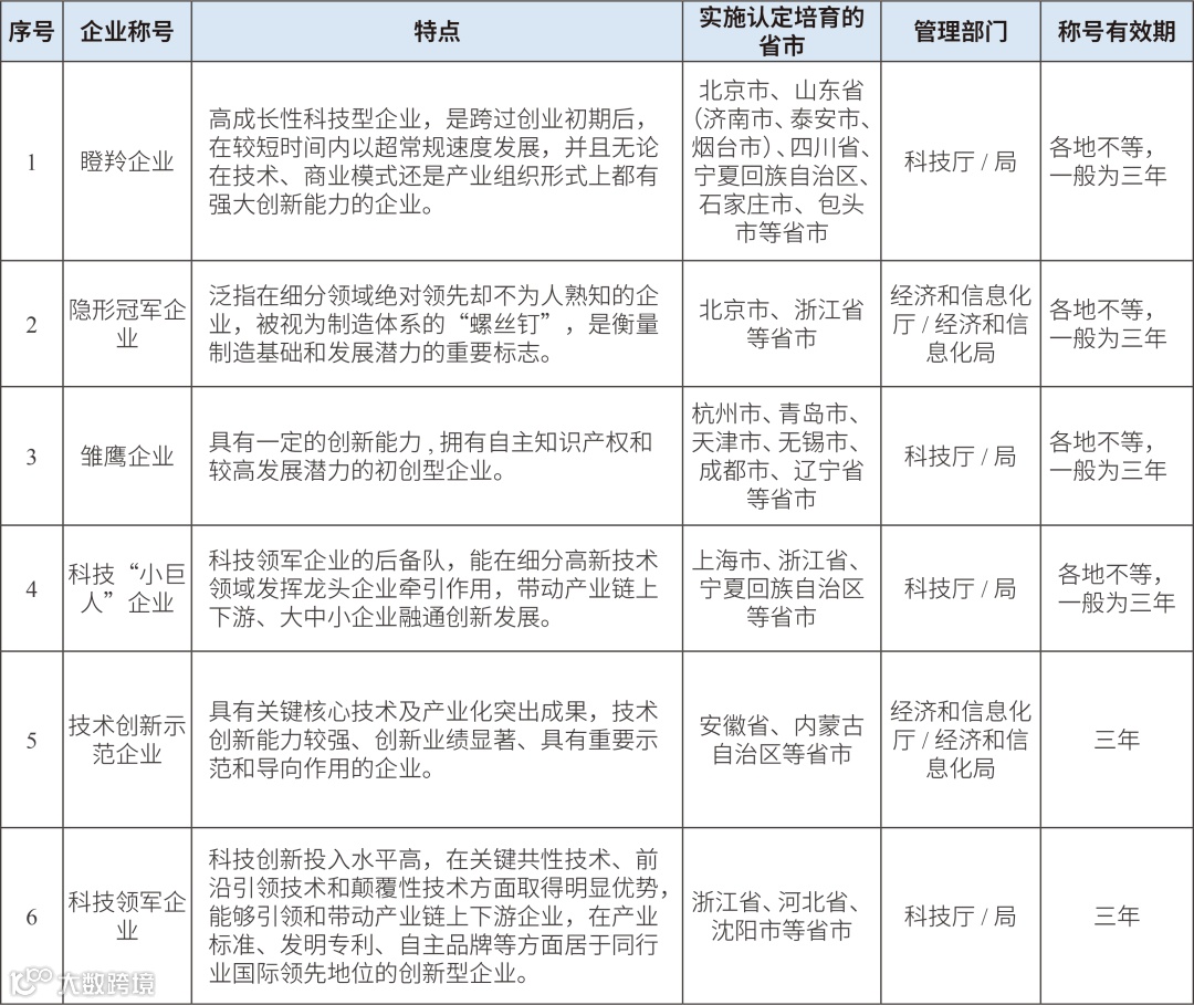 表1 工业和信息化部及科技部归口下优质企业认定情况