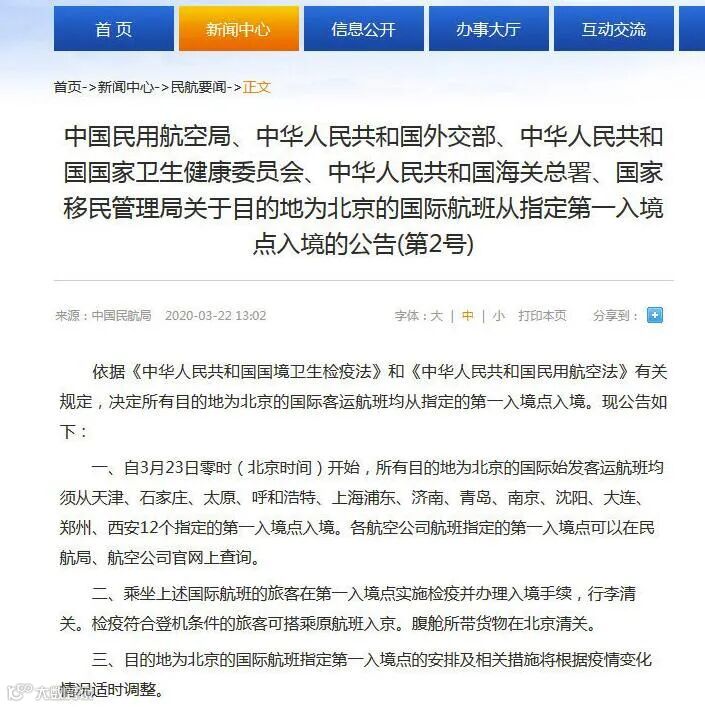 为了排除这一巨大隐患,今天,国家出台了进一步疏解方案:从23日起,所有到北京的国际客运航班,均从12个指定点入境: