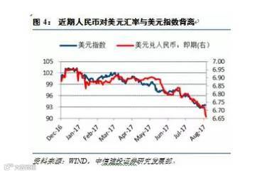 ② 基本面影响:上半年我国经济增长比预期要好。数据显示,中国一二季度均实现了6.9%的经济增速。明显高于全球平均水平。制造业先行指数PMI连续12个月位于荣枯线上方。国际货币基金组织今年第三次上调2017年中国经济增长预期。今年前7个月,我国货物贸易进出口比去年同期增长18.5%。(数据来源:央视网)中国经济企稳回升对人民币汇率起到了有效支撑作用。