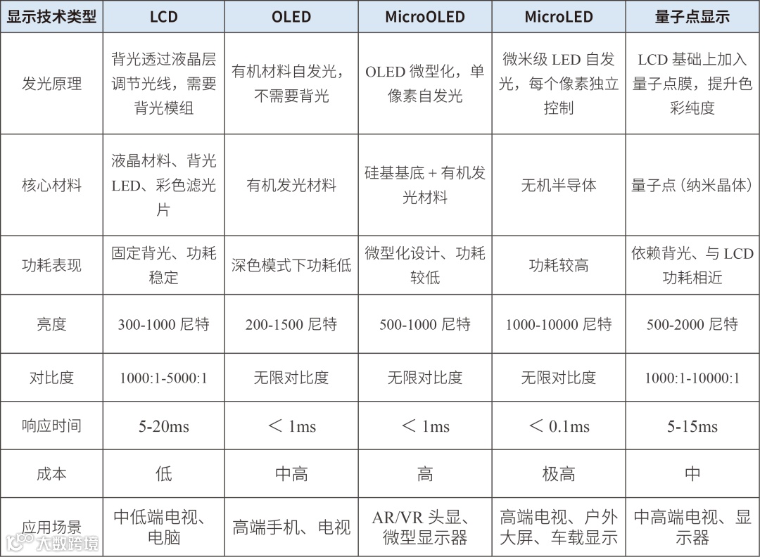 MicroOLED、MicroLED、激光显示、量子点显示技术均处于产业化发展中早期阶段,尚未实现规模化市场验证。MicroOLED技术凭借高像素密度与快速响应特性,在近眼显示市场展现出巨大潜力,但MicroOLED亮度与寿命平衡问题尚未完全解决。量子点显示色彩优势显著,适配大尺寸电视,但大规模量产仍需突破设备与工艺瓶颈。MicroLED在车载、高端显示场景逐步落地,却仍然存在核心工艺尚未完全突破、量产成本高等挑战。这些技术均需要通过场景验证和技术迭代实现突破。