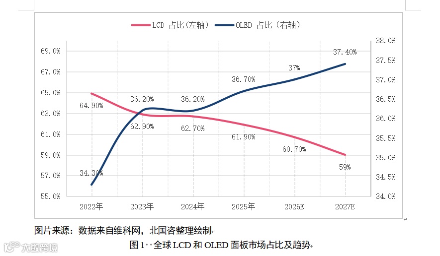 图1 全球LCD和OLED面板市场占比及趋势