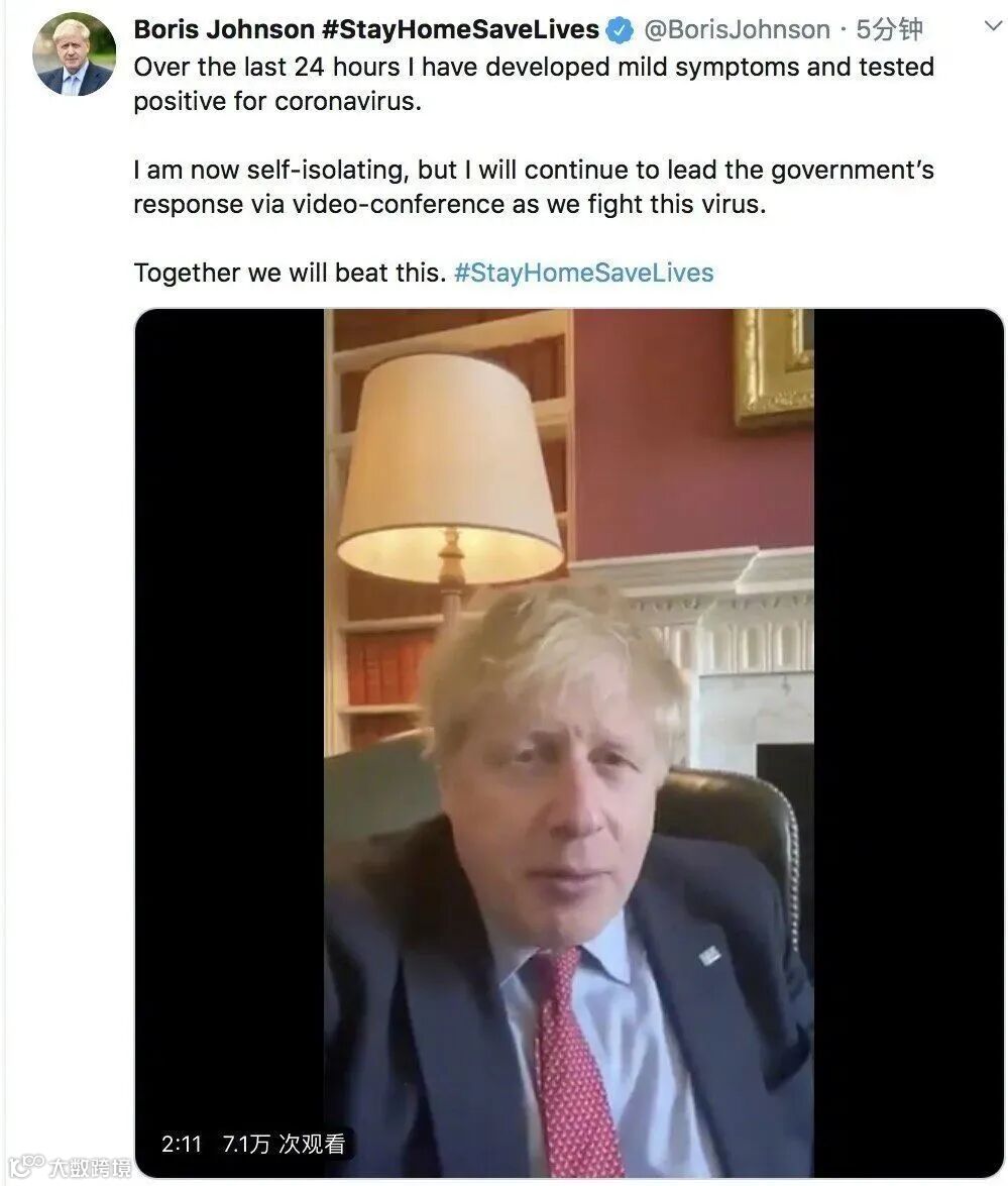刚刚,英国传来大消息,英国首相鲍里斯·约翰逊新冠病毒检测呈阳性。