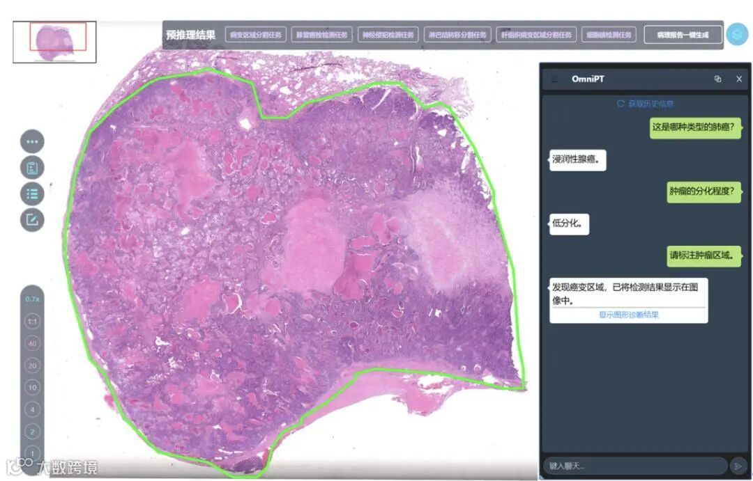 浙江大学开发的AI病理助手OmniPT是这一领域的典型代表。该系统运用多模态大模型对病理切片进行分析,辅助医生实现更精准、更快速的癌症诊断。目前,OmniPT已在浙江大学医学院附属第一医院病理科进行临床应用,有力地推动了病理诊断技术向智能化和个性化方向发展。