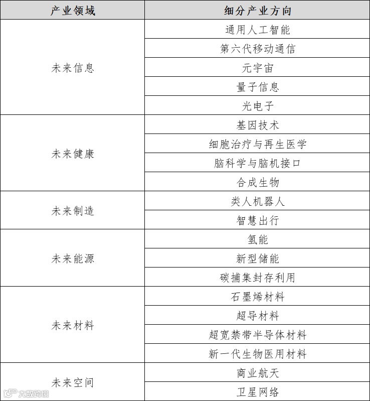 表3 未来产业细分方向