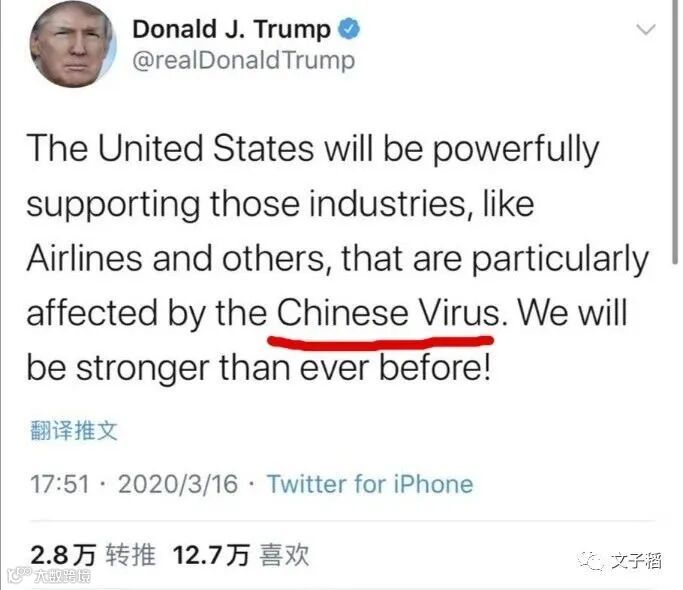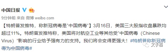 2、美股大跌后,特朗普更加举措失当,语无伦次,为了甩锅,竟公然将新冠病毒称为“中国病毒”。