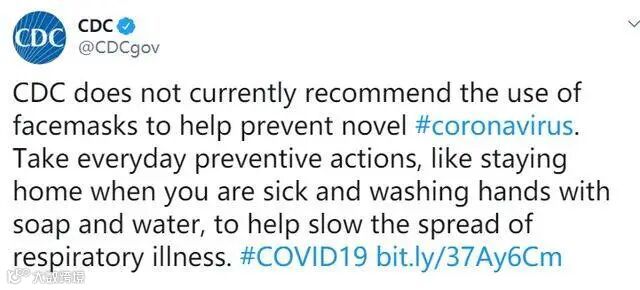 或许是意识到问题严重,2月27日,美国疾控中心(CDC)发了一份安民推特,建议大家无需佩戴口罩,没想到话音未落,超市里已经一个口罩都看不到了……