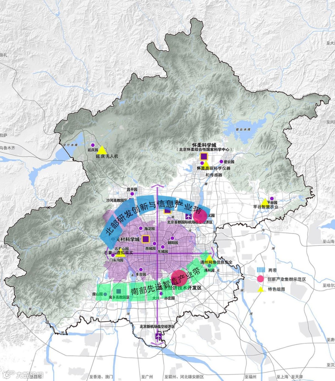 (一)遵循北京市高精尖产业发展规划布局。《北京市“十四五”时期高精尖产业发展规划》(简称“高精尖规划”)中提出打造“一区两带多组团”分区发展格局。即提升“一区”产业能级,在北京经济技术开发区、顺义区建设创新型产业集群示范区;全力打造南北两个产业聚集带,北部以海淀区、昌平区、朝阳区为核心打造研发创新与信息产业带,南部以丰台区、大兴区、房山区为核心打造先进智造产业带;加快建设一批特色鲜明的产业组团,重点促进通州区网络信息安全产业、石景山区虚拟现实产业、怀柔区高端科学仪器和传感器产业、延庆区无人机产业等组团发展。
