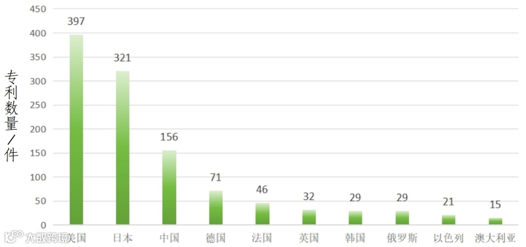 图2 eVTOL领域PCT申请量排名前十的国家(截止到2024年)
