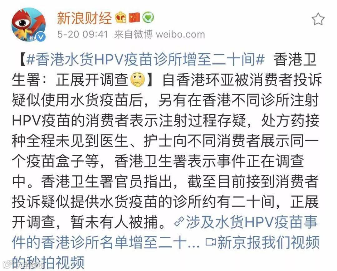 早在今年5月就有港媒曝出,香港一些诊所为内地客人接种水货HPV疫苗。