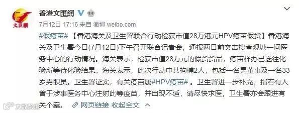 于7月10日查获市值28万港币的HPV假货疫苗,这些疫苗已经有人注射,而且大多数还都是“慕名而来”的内地消费者。