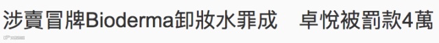 因被查出销售冒牌Bioderma卸妆水,被罚4万元。