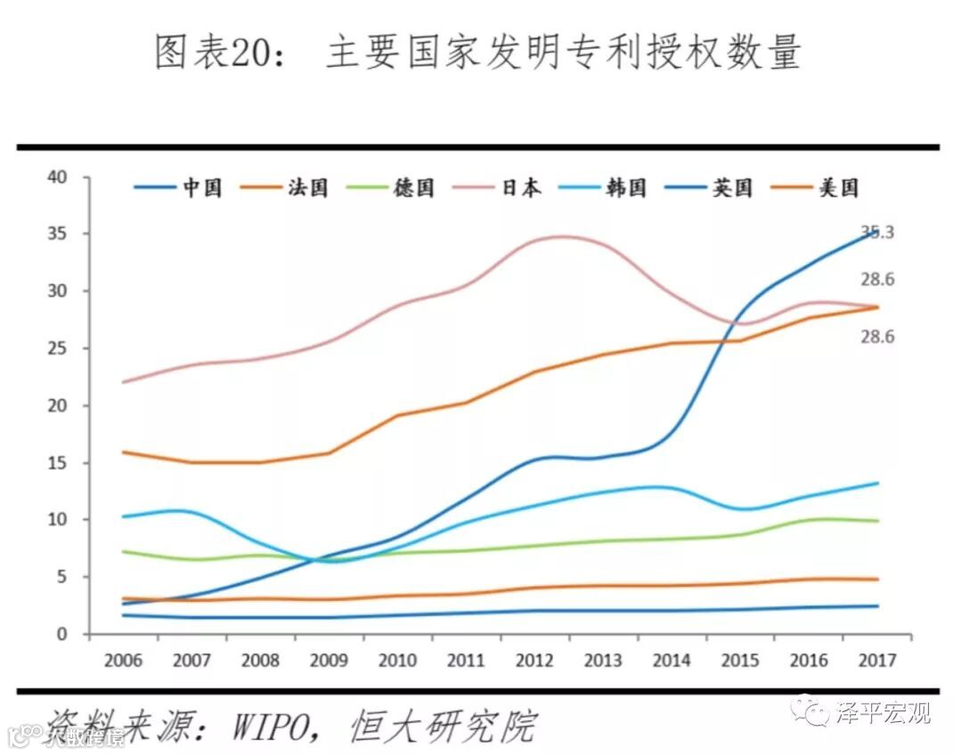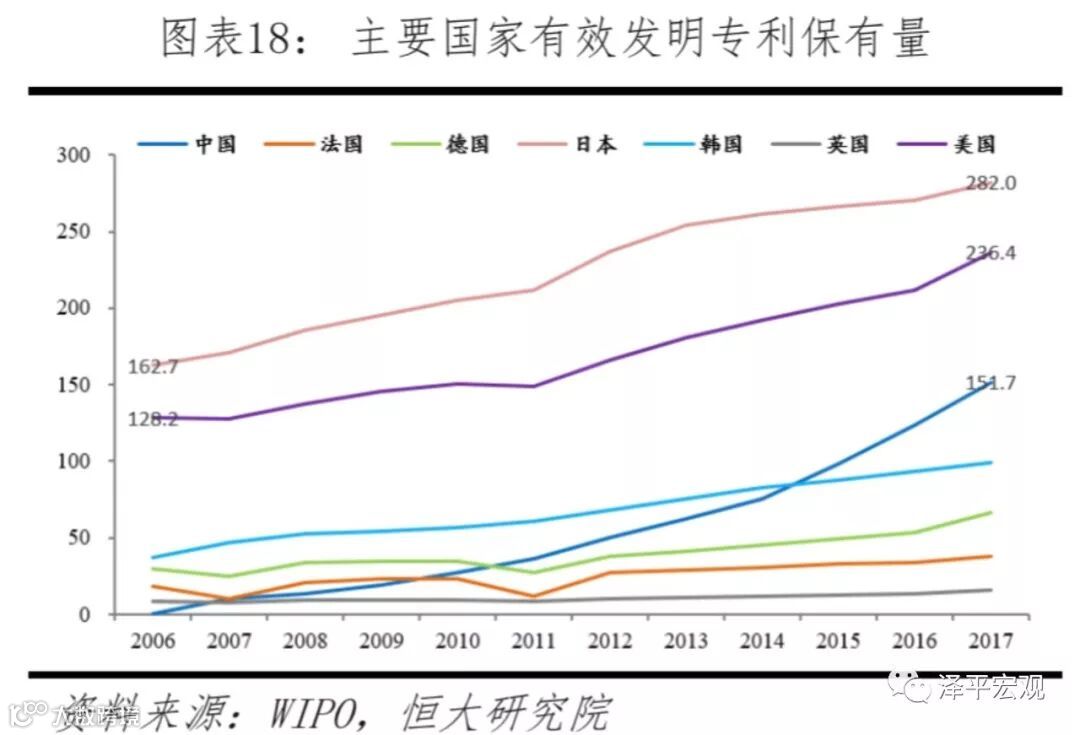 根据世界知识产权组织(WIPO)统计,截止2017年底全球共有1043万件有效发明专利,其中保有量排名前五分别为日本(282万)、美国(236万)、中国(152万)、韩国(99万)、德国(67万)。从增量角度,2016年各国发明专利申请量排名分别为中国(131万)、美国(53万)、日本(46万)、韩国(23万)、德国(18万),而专利授权量排名分别为中国(35万)、日本(29万)、美国(29万)、韩国(13万)、德国(10万)。中国近年来在专利方面发力明显,在申请数量上已经大幅超越美国、日本,授权数量略超美、日,在专利的授权率与实际转化方面中国仍有较长的路要走。