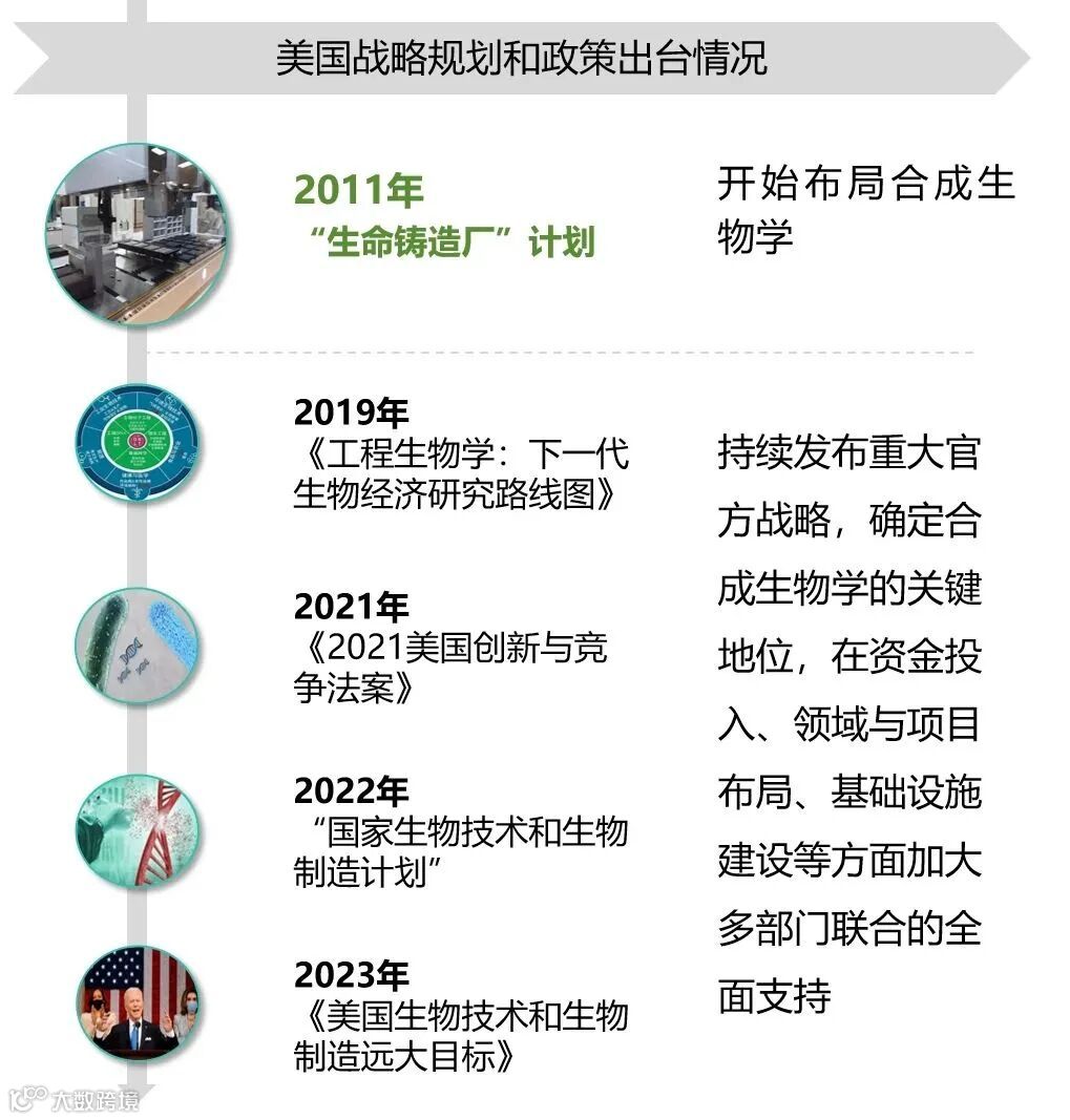 为保持生物技术在未来几十年内的领先地位,增强生物经济竞争力,美国持续加大合成生物学在医药健康、食品农业、能源环境、材料化工等领域的技术创新与应用布局。自2011年起,先后发布众多战略支持,积极推进合成生物学的创新发展。