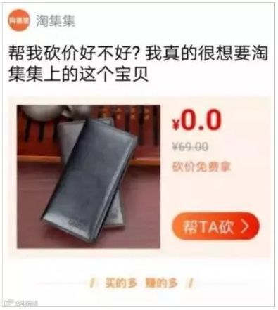 这一招确实帮助淘集集吸引了很多贪图便宜的用户;甚至为了数据好看,融资方便;淘集集还喊出了口号“买的多,赚的多”,直接让用户邀请亲友参与拼团,满足要求后可再次享受数次低价购买的权利。