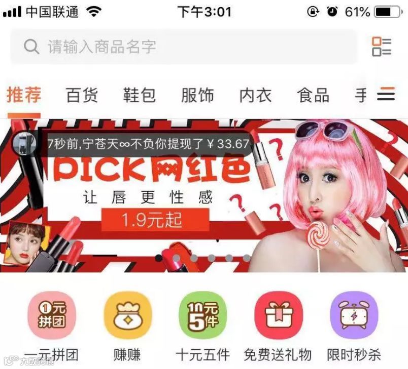 淘集集早期的发展方法几乎与拼多多一模一样;不仅界面设计看不出分别,而且从名称到电商玩法都极为类似。
