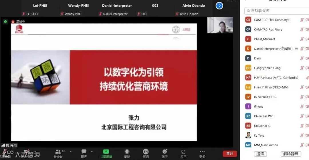 2022年8月24至26日,由电子工业出版社华信研究院举办的2022年度亚洲合作资金项目《澜湄国家数字经济发展国际合作培训班》(以下简称“培训班”)以线上线下结合的方式召开。培训班邀了请外交部、工信部、泰国数字经济促进局等方面的领导及国内外商界代表,分享数字经济领域发展情况及重要观点,介绍中国数字经济发展经验及成果,以进一步推动澜湄合作深入发展。北国咨营商环境事业部张力博士受邀发表了《以数字化为引领,持续优化营商环境》的主题讲座。