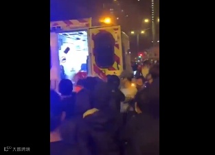 据媒体报道,这个视频的时间大概是11月18日凌晨约2时40分,视频里的画面是大批暴徒袭击救护车,