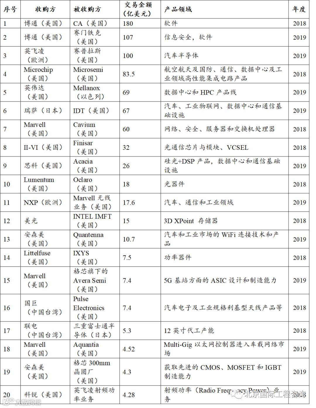 表1 2018-2019年度(截止到8月20日)发生的国际半导体产业并购