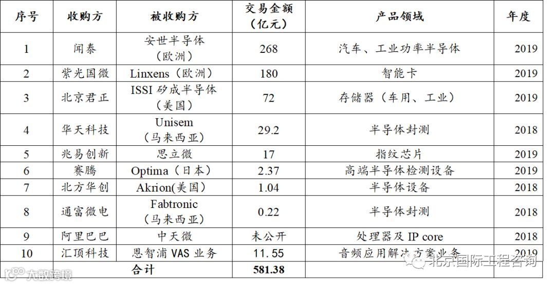 表2 2018-2019年度(截止到8月20日)发生的国内半导体产业并购