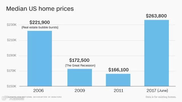 目前美国房市十分火热,6月的平均成交价格为26.38万美元,同比上涨了6.3%。6月也是连续第64个平均房价增长月。