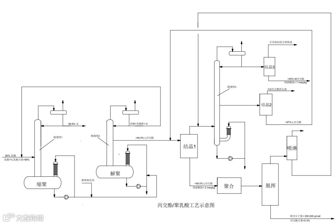 · 反应精馏一体化:高效传热传质,快速脱水,缩短停留时间至 8 小时以内,抑制 M-丙交酯与 D-丙交酯 等副产物生成,确保中间体质量。