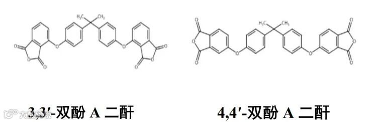 双酚A二酐是指3,3′-双酚A二酐和4,4′-双酚A二酐两种同分异构体,结构式如下: