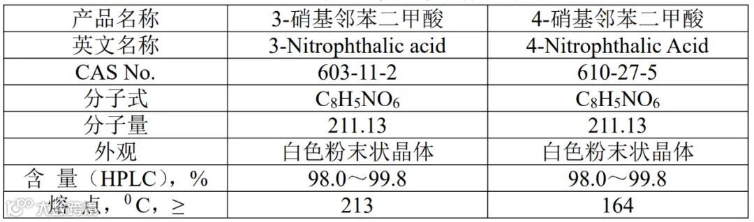 采用“分子诱化分离”技术对异构体混合物进行分离纯化,同时获得高纯度(≥99%)的3-硝基邻苯二甲酸和高纯度(≥99%)的4-硝基邻苯二甲酸两种产品(平均总收率≥90%),离子液体实现循环再利用。