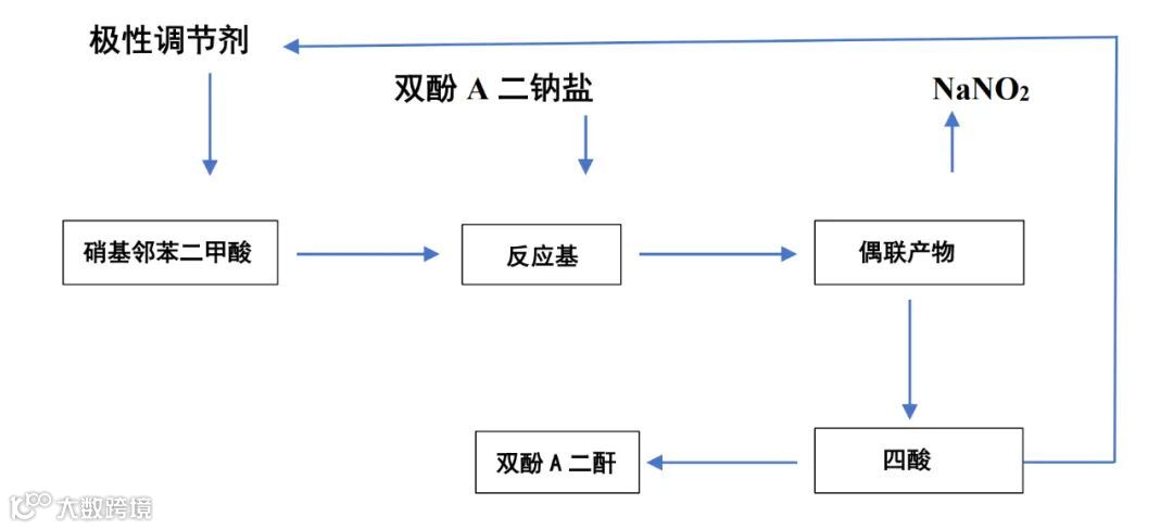 为了突破现行技术的惯性架构,我们不采用甲胺或苯胺进行保护,而是通过调整硝基邻苯二甲酸分子结构的极性,使其溶解度大幅提高,更有利于硝基邻苯二甲酸基团和双酚A二钠盐进行醚化偶联反应。