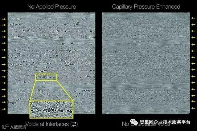 所得复合材料没有空隙,类似于在高压釜中生产的航空级复合材料。研究人员对复合材料进行了强度测试,试图将各层分开,预估如果存在空隙,则可使各层更容易分离。