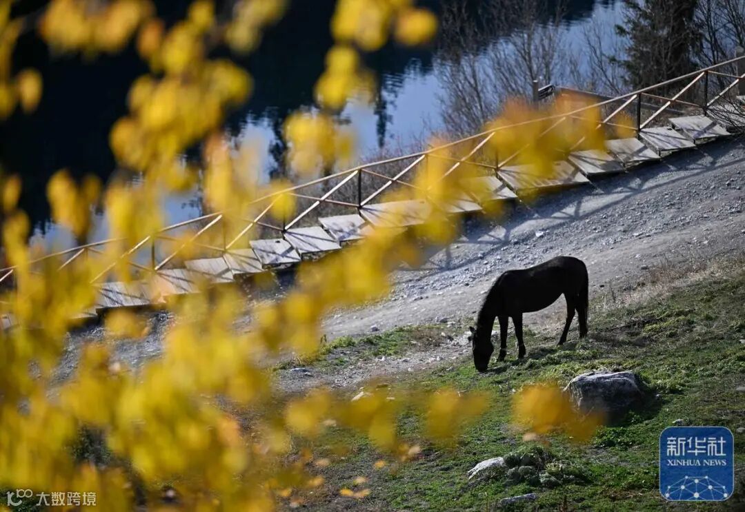 ↑这是10月21日在哈萨克斯坦阿拉木图州的科尔赛湖国家公园拍摄的一匹马。