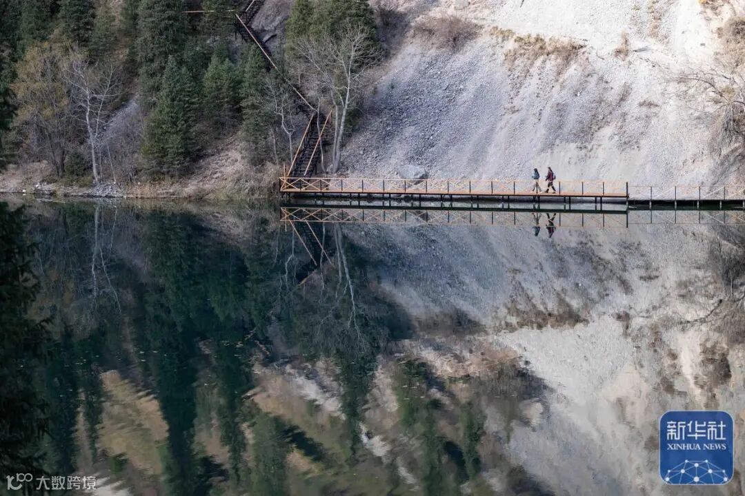 ↑10月21日,游客在哈萨克斯坦阿拉木图州的科尔赛湖国家公园游玩。