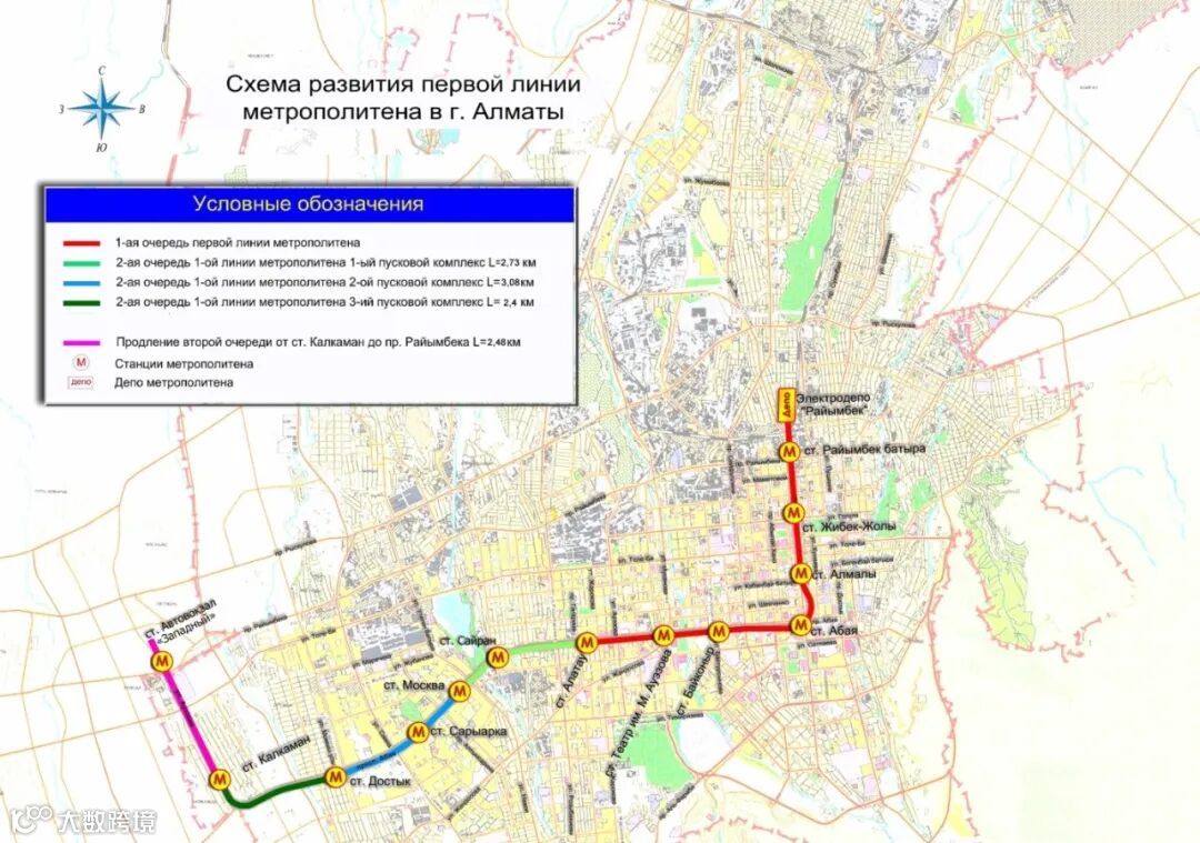阿拉木图整个城市只有一条地铁线,全程8.5公里,始建于1988年,在23年后的2011年才成功通车,曾经是苏联时期的防空洞所以很深,每站都需要下一个很深很长的电梯,全程手机没信号,建议把你要去的地方截图下来,对照墙上的路牌乘车。