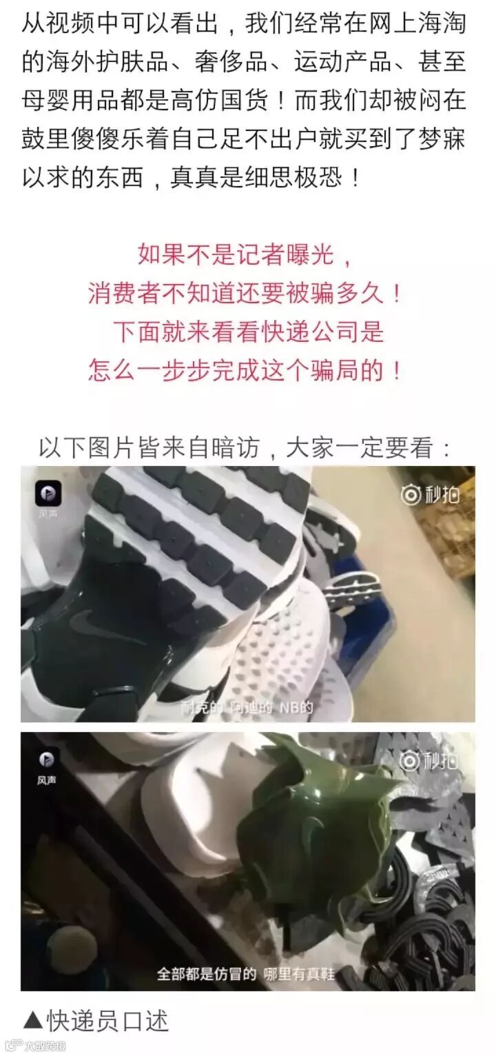 福建、广东等城市发出的快递单,快递公司全部配合商家伪造成美国、香港等国外发货的快递信息!每单收35元。(不仅鞋子捞一笔,快递费都被坑)