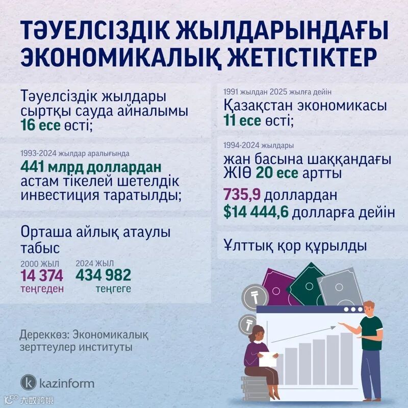 —独立多年来,建立了黄金和外汇储备以及国家基金。在新改革框架内,实施了两项旨在减少对石油收入依赖的反周期规则:限制国家基金担保转移支付的规模以及新的《预算法》。改革成果正在显现。2025年,GDP超过3100亿美元,约占中亚经济总量的60%。国家经济连续三年实现了5%以上的增长。人均GDP达到了14000美元,在人类发展指数中也有所提升。-努尔赛托夫说。