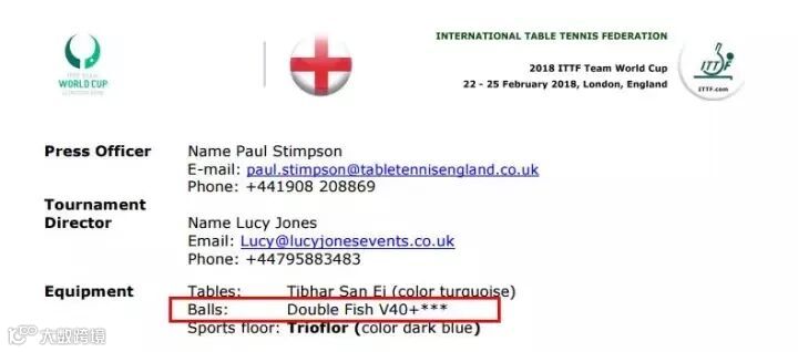 北京时间11月22日,国际乒联在官方网站上公布了2018年世界杯团体赛的日程安排,记者发现并在其名为“比赛说明”一栏中透露出了此次比赛的指定用球----Double Fish V40+***。