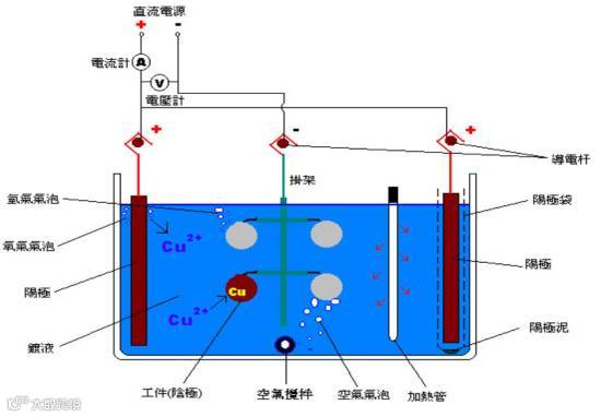 电镀是利用电化学作用使金属的表面附着一层金属膜的工艺,从而起到防止腐蚀,提高耐磨性、导电性、反光性及增进美观等作用的一种技术。