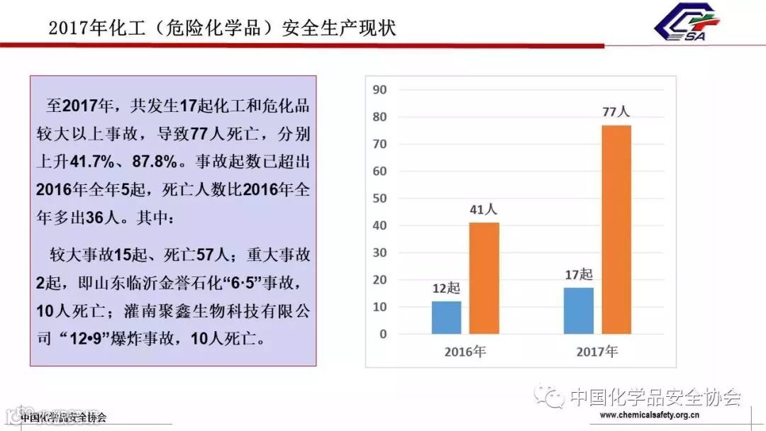 近期,台湾中油练厂和九江石化事故牵动了众多业内人士的心!2017年,我国共发生17起化工和危化品较大以上事故,导致77人死亡。事故起数量比2016年多5起,死亡人数比2016年多36人,其中较大事故15起,死亡57人,重大事故2起,死亡20人。下面这个ppt非常全面地概括了17起典型生产安全事故的原因和事故发生过程,警钟长鸣,希望未来,这样惨痛的事件不要再发生了!