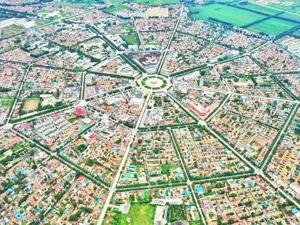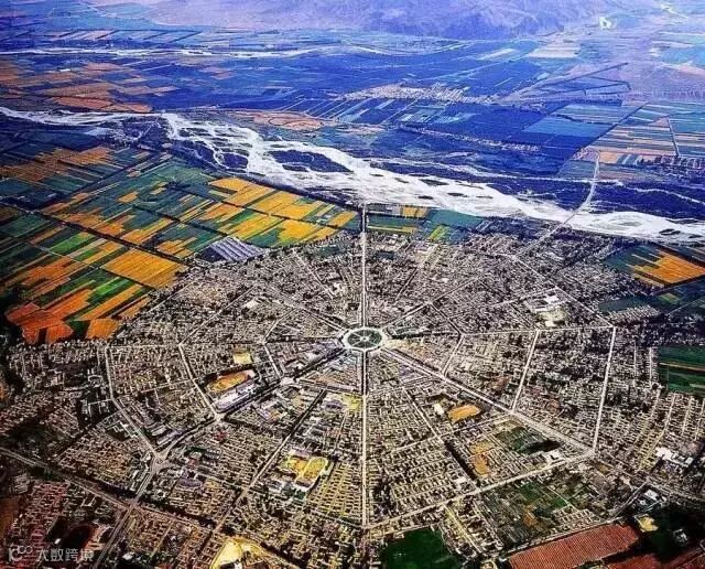 从高空俯瞰特克斯,整座城市呈现放射状的4环,64条街路路相通,犹如一张摊开的大型八卦图。