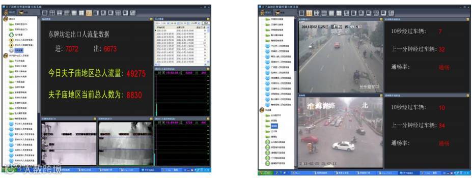 5、通过智能视频分析技术建立实时交通流量采集与显示示范系,如某区域人数超过警戒线时,系统将及时告警,并自动弹出该区域的实时视频。