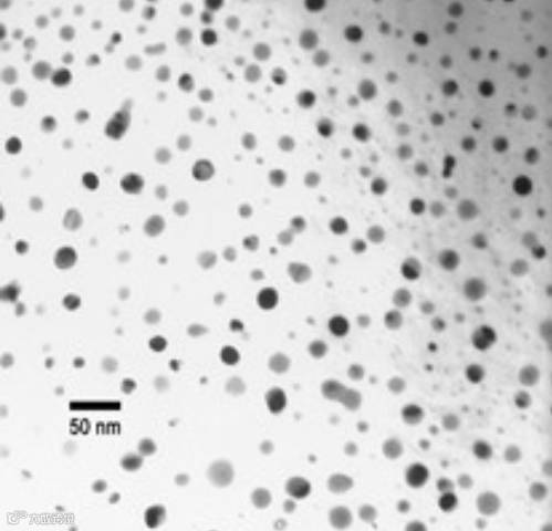 PU/Ag中纳米银颗粒的透射电镜照片。可见纳米银均匀