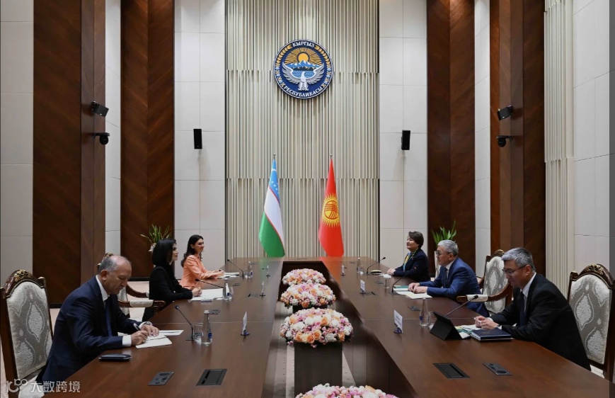 比什凯克,2025年8月20日,吉尔吉斯共和国内阁总理、总统办公厅主任阿德尔别克·卡瑟马利耶夫与乌兹别克斯坦总统办公厅主任赛伊达·米尔济约耶娃举行了会晤。