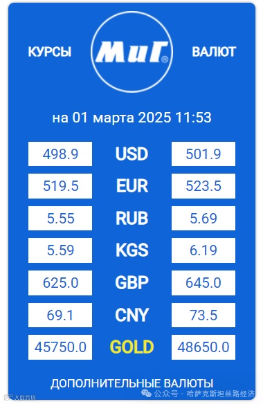 【обменный курс】2025年03月01日哈萨克斯坦坚戈汇率