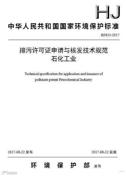 2017年8月22日,环保部发布《排污许可证申请与核发技术规范石化工业》(HJ853—2017),全面推进石化工业排污许可制度改革。国家排污许可证申报平台上的石化工业模块同步开启。