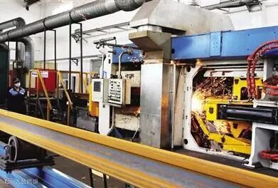 沿着钢轨磙道线的传送方向前行,步入精整作业区。记者看到,焊接后的焊头,正在电脑操控下进行着一系列外观矫直、铣削、平整、超声波探伤检测等作业工序。