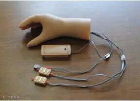 具有力触觉反馈的智能肌电假手通过采集人体手臂部位的肌电信号,结合安装在假手手指部位的力触觉传感器,使用分段模糊比例控制算法实现对假手开合速度和握力的比例控制,同时将假手的握力情况通过振动器反馈给假手佩戴者,使得假手佩戴者能感知到假手的握力情况,及时调整控制策略,增强了假手对于佩戴者的本体感。设计的假手具有自主学习功能,能主动适应不同佩戴者的肌电信号强度,减小了使用假手的学习时间。该项目广泛的社会效益和市场前景。